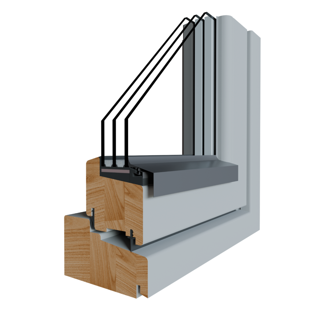 This type is unique in that we use the same 68 mm sash of the European window, but we enclose it with insulated aluminium, which improves the thermal resistance parameters and at the same time gives the product a competitive price on the market.